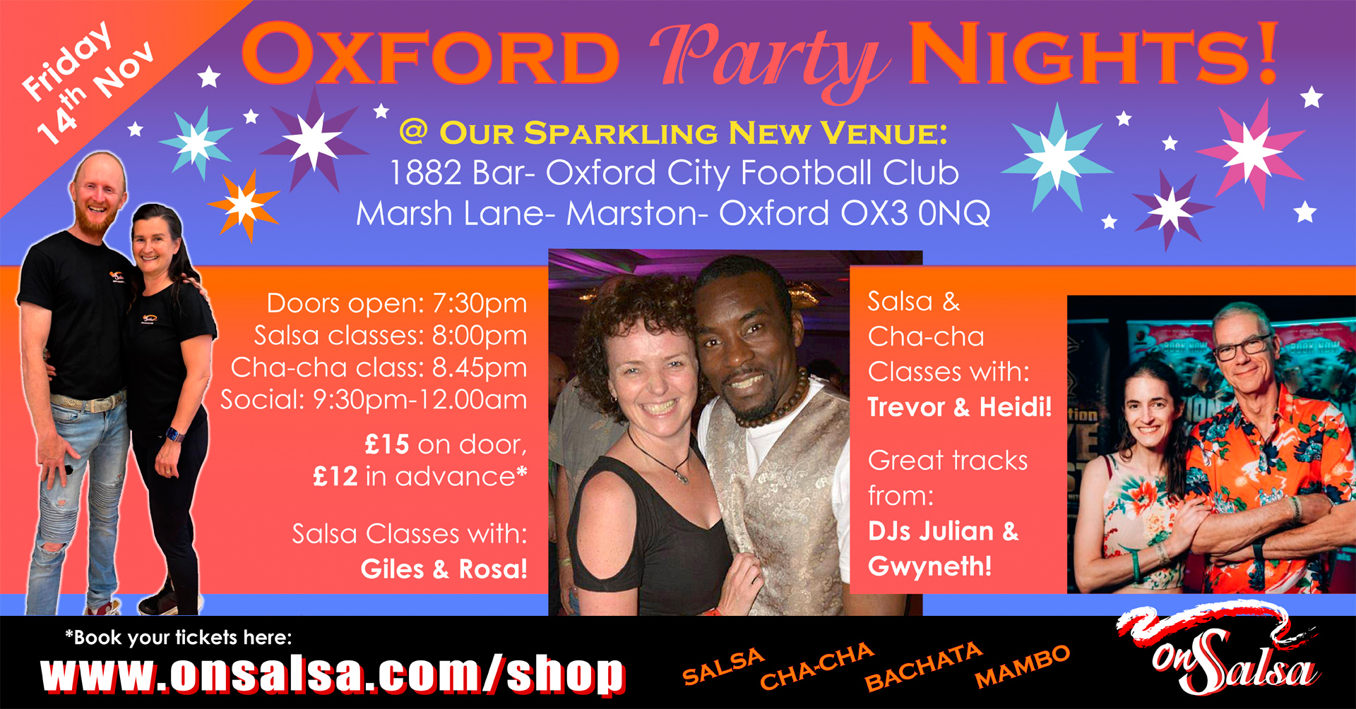 Fabulous Salsa Party night in Oxford New venue Bar 1882 @ Oxford City FC, OX3 0NQ 8pm start so come earlier Book your tickets for only £12 pp