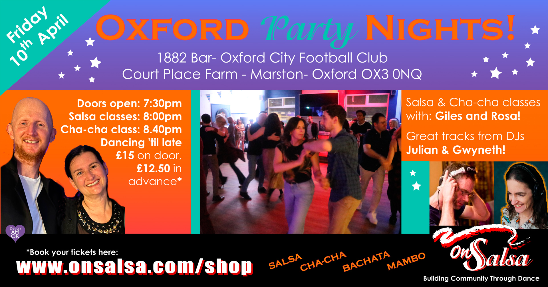 Oxford SALSA party with Salsa & Cha cha workshops. GUESTS Rosa & Giles